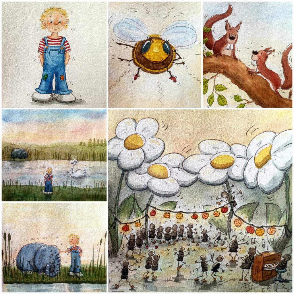Illustrationen für Kinderkonzerte aus „Tommy und der kleine Elefant“Kinderkonzerte Kiel aus „Der kleine Ritter Sigismund“Kinderkonzerte Kiel allerlei Getier
